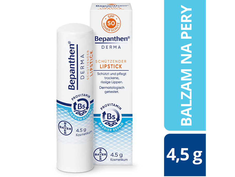 Bepanthen balzam na pery ošetruje suché a popraskané pery a chráni ich pred slnečným žiarením UVA a UVB. S obsahom pantenolu, včelieho vosku a vitamínu E na regeneráciu a hydratáciu pier. Na každodenné používanie.